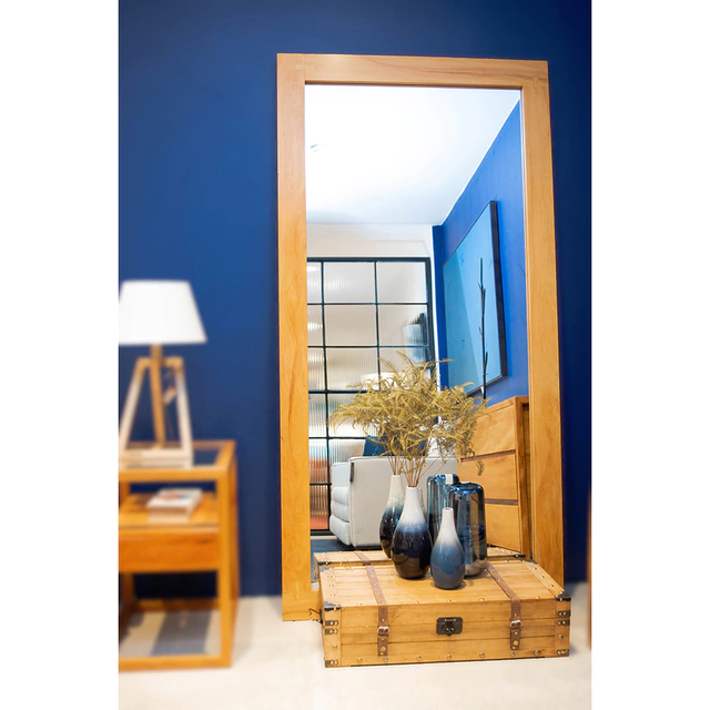 Espelho Cavilha madeira de demolição, matéria-prima ecologicamente correta que proporciona mais durabilidade ao produto e um acabamento único em cada peça devido à exposição ao tempo que a madeira é submetida antes de ser aproveitada.