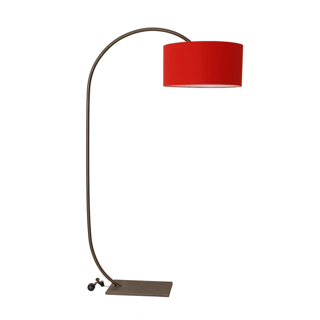 Abajur Arco em forma semicircular com cúpula cilíndrica, produzido em aço carbono, com pintura eletrostática na cor marrom carajá.